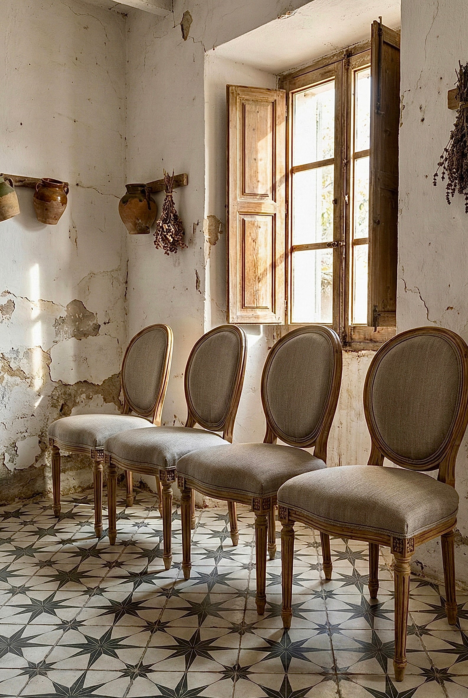 Conjunto de 4 sillas de roble lavado